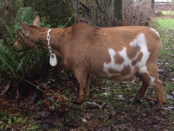 Yesterday we took a little drive to Mountain Lodge Farm in Eatonville, WA. If you don’t know about Mountain Lodge Farm you should check them out! They have a barn full of beautiful Nigerian Dwarf, Lamancha and Lagerian (Nigerian/Lamancha cross) goats whose milk is used to make really delicious cheese, I think I’ve tried them all! We’ve been there for their open house a couple times, you can sample cheese, tour the barn, and visit baby goats. It’s fun for the whole family, the next one is a Holiday Open House on December 6th. You can also sign up for cheese making classes, which I hope to do in the near future! Usually we come home with cheese from Mountain Lodge Farm…but this time we brought a goat home with us! We are very excited to introduce SG Pholia Farm DB Francine.
