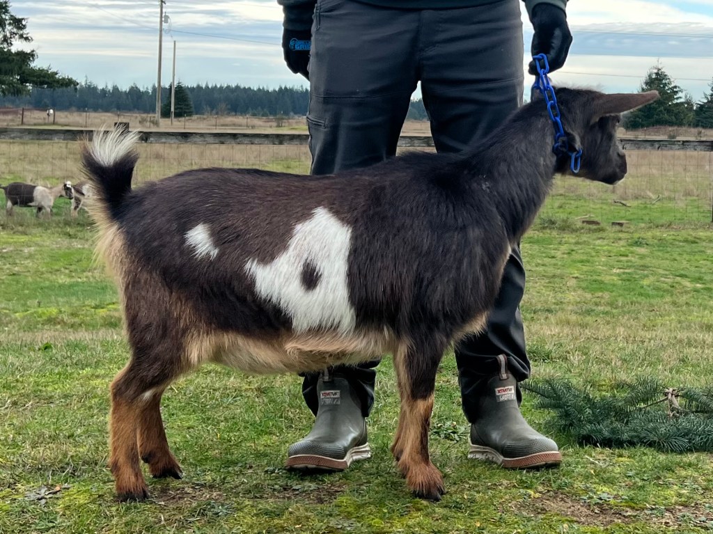 ADGA Planned Pedigree Wilder is an exciting keeper from an AI breeding last year, he’s out of Four Cedars DP Pearlee VEEE 90 and sired by CH Winning Streak CM Molded Rose *B. I’m excited to see how he pairs with Franke Farm ID Saint Laurent (Bellafire BP I Do *B VVE 87 X SG Pholia Farm UB Cartier 8*M VEEE 90). Last September Laurent appraised EEEE 91, scoring V’s and E’s in all structural categories, with E in rear legs, back and rump. She scored with 39 fore udder, 37 rear udder height and 41 rear udder arch. She did very well on milk test, a consistent producer peaking at 5.9 pounds. Dam to Lucy. Doeling will be retained.