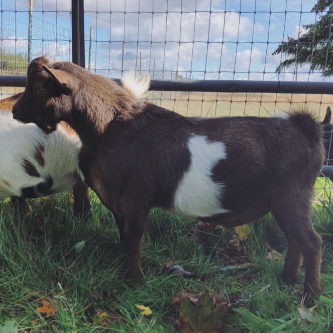 Our very first doe was SG Elfin Acres Daisy, she came to our farm in the summer of 2012 when she was 2 years old, she passed in 2022 but her genetics live on in our herd. We’ve have since gone from the first two does, to a herd. We milk our goats and enjoy making cheese, soap, ice cream, yogurt, caramel and more. Our goal is to improve our lines with each breeding and we look for Nigerian Dwarfs with good temperaments, correct conformation, milking ability and health. We want them to be wonderful pets and milk goats, while meeting the breed standard of a proportionate and productive dairy goat in miniature. Coat color is fun and we do have a variety of colors but it is not something we breed for in our herd. We appreciate the solid gold and sleek black goats just as much as their more flashy herd mates.