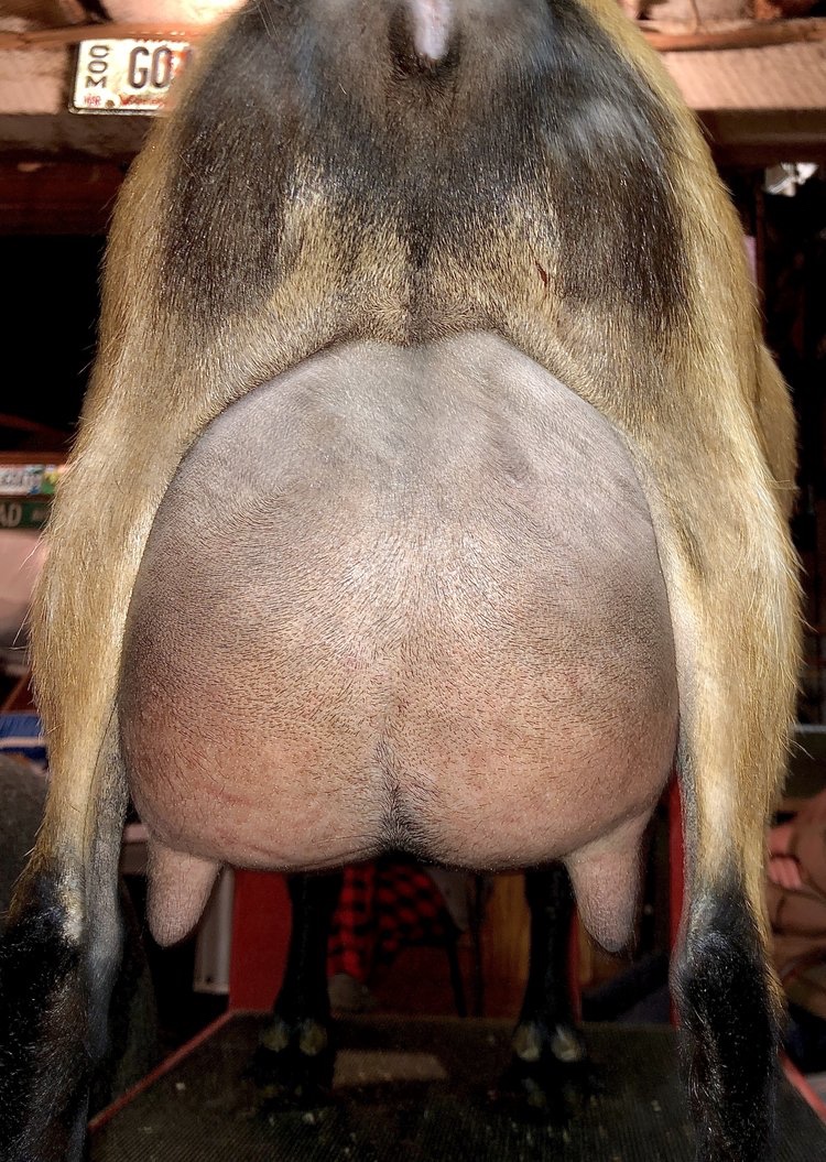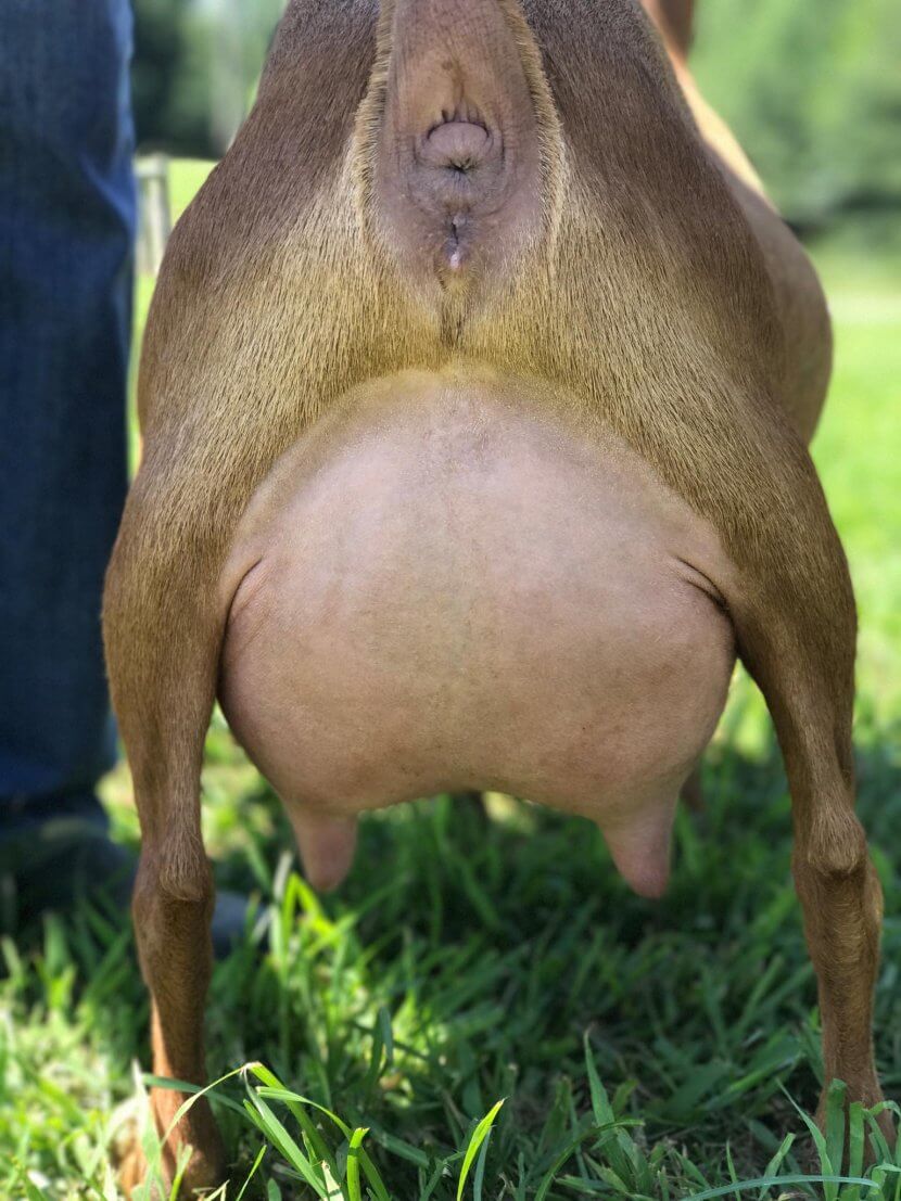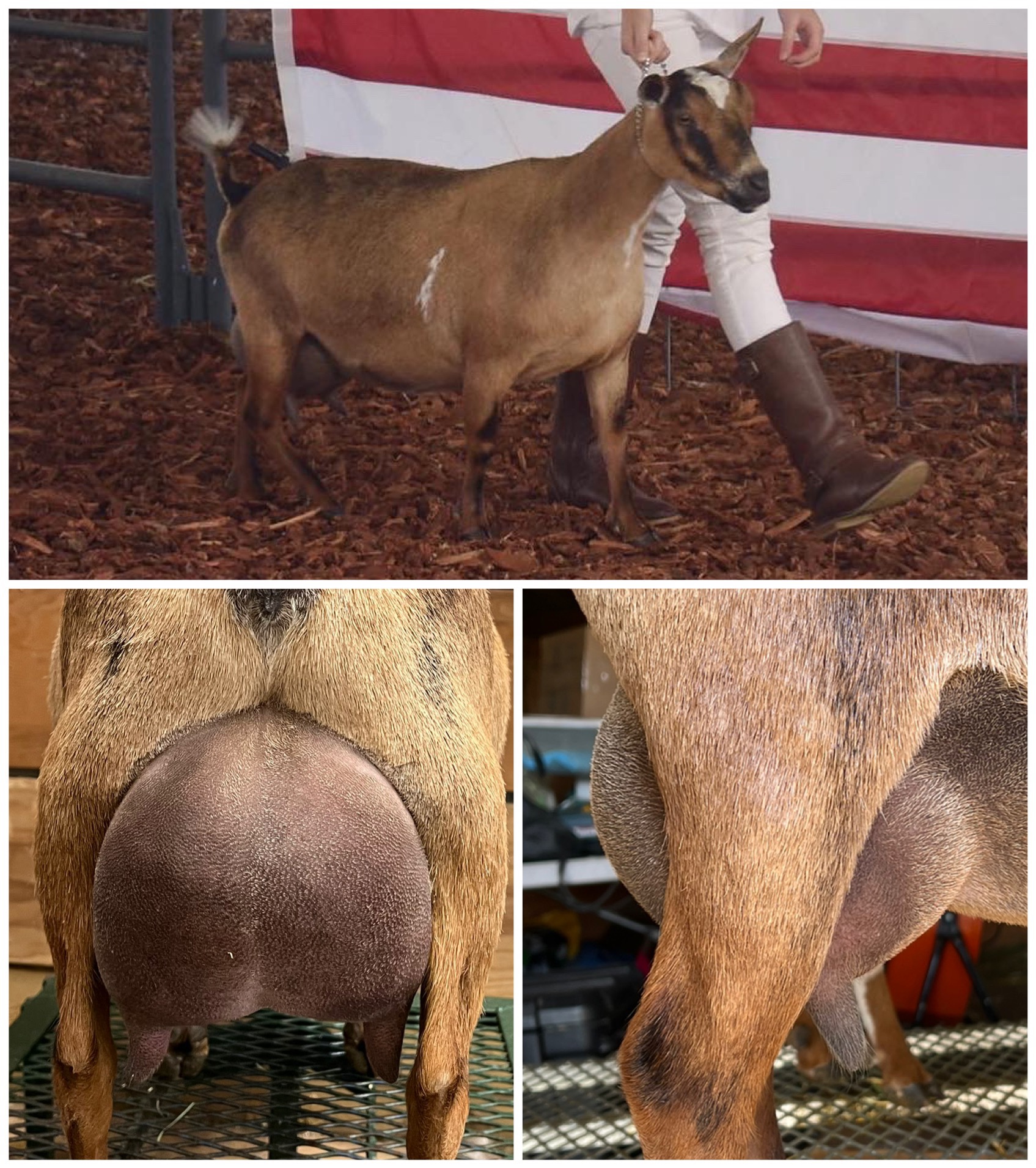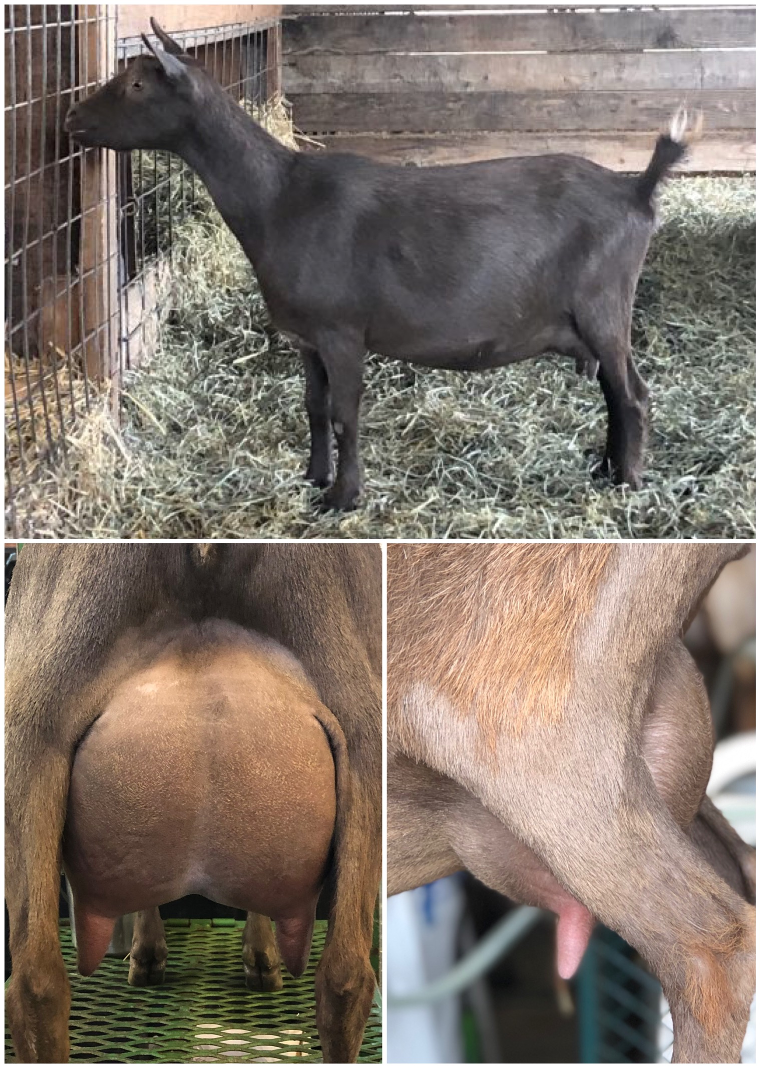 Sire: Agape’s Prize Gold Centerfold (CH Wood Bridge Farm Undeniable X CH Wood Bridge Farm 22K Gold ADGA EEVE 91 2018 National Champion)
