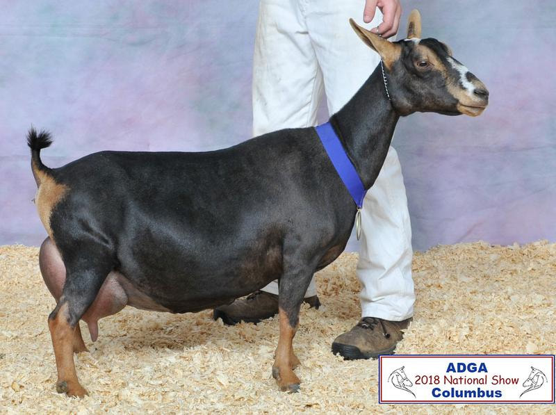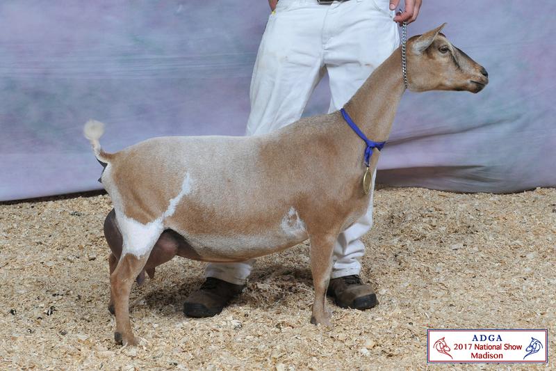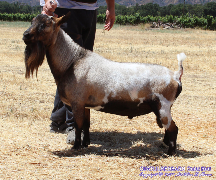 Sire: *B CUatLilRedBarn Quiet Riot (CH CUatLilRedBarn Whistle Back +*B X SGCH Old Mountain Farm Shy Elk 5*M EEEE92 2018 ADGA Reserve National Champion)