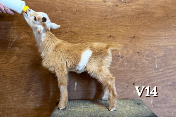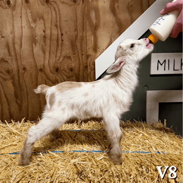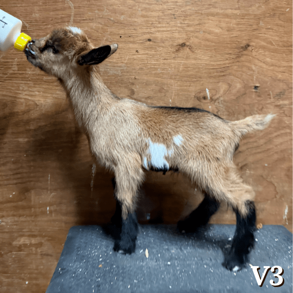 Notes: Vega is a first freshener, she kidded unassisted on day 144 at 3:30 PM with twin bucklings (3.9 and 3.96 lbs).